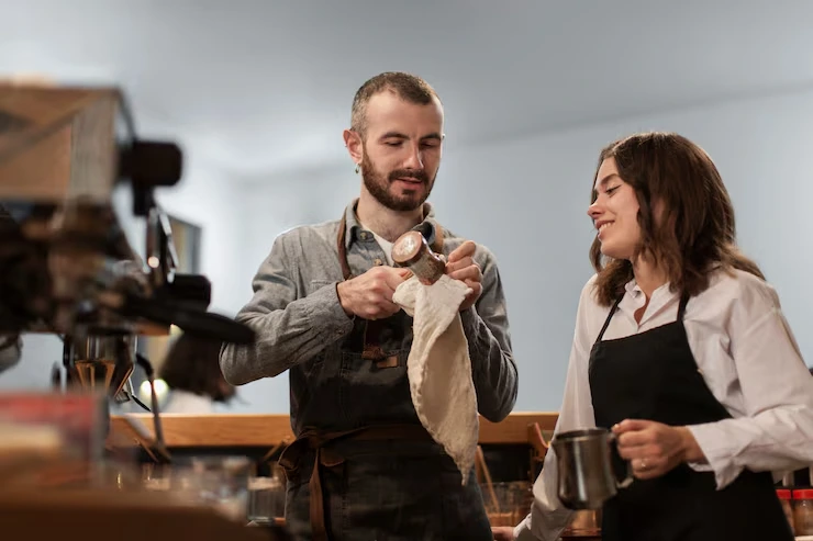 Your staff are the face of your coffee shop. Our barista training and staff development programs focus on both technical skills and customer service. We provide training modules that cover espresso preparation, latte art, equipment maintenance, and effective upselling techniques.