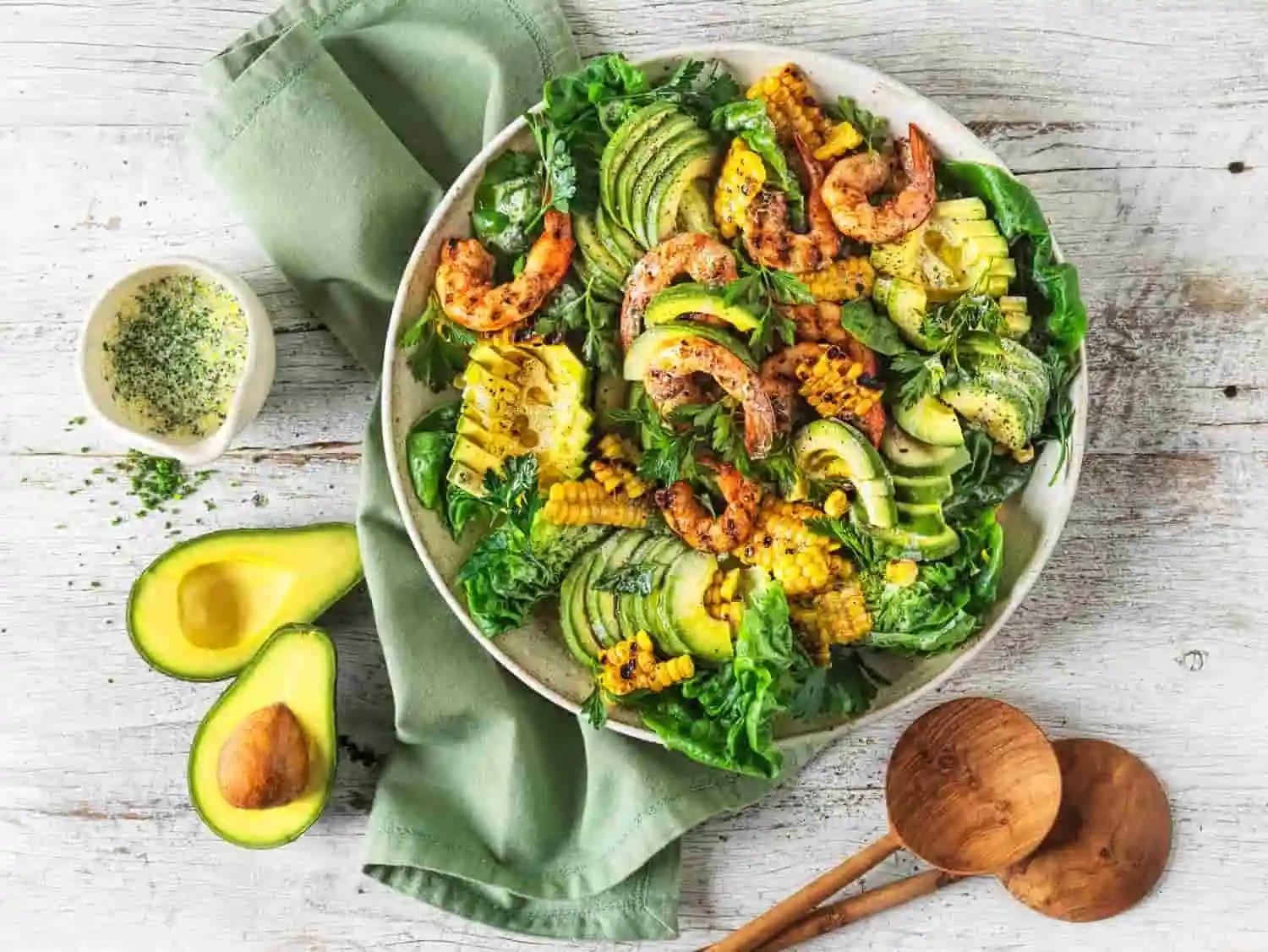 - King Prawn Avocado Salad: Our light salad features juicy king prawns, creamy avocado, and a zesty dressing.