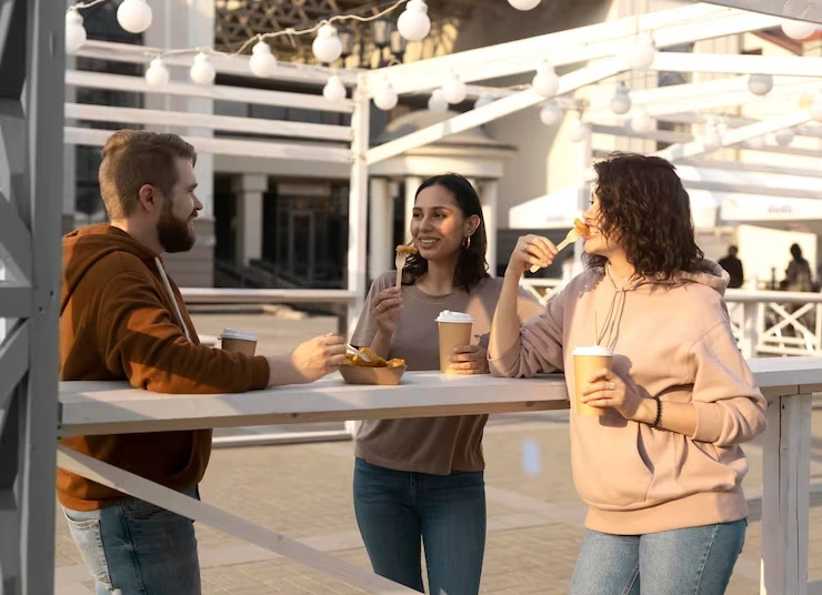 - Mobile catering units serving hot, fresh, and hygienic meals in open-air venues